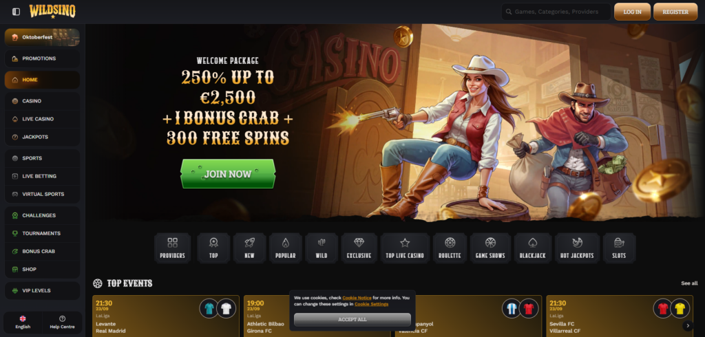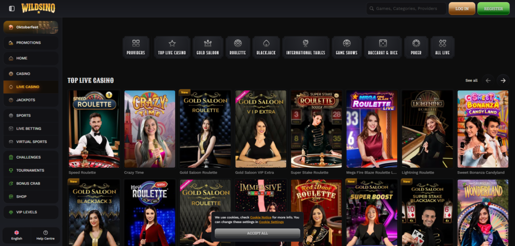 Wildsino bietet Schweizer Spielern eine vielfältige und umfangreiche Auswahl an Casinospielen, die das Sportwettenangebot ergänzen. Die Plattform bedient eine breite Palette von Vorlieben, von Slot-Enthusiasten bis hin zu Fans von Live-Dealer-Erlebnissen.