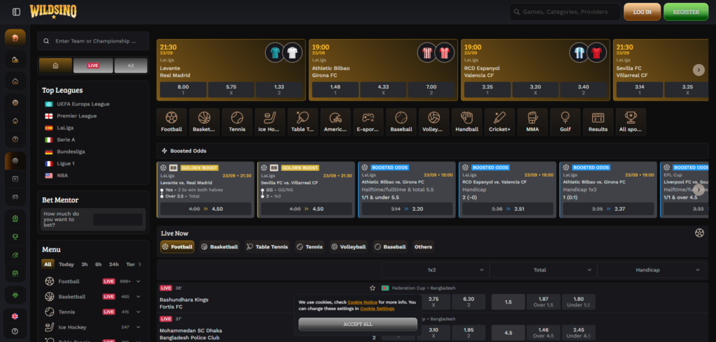 Wildsino bietet ein umfangreiches Sportwettenangebot mit über 50 Sportmärkten, das ein breites Spektrum an Wettvorlieben abdeckt. Die Plattform verfügt zwar auch über ein solides Casino-Angebot, aber die Sportwetten-Optionen sind ebenso bedeutend und gut entwickelt.